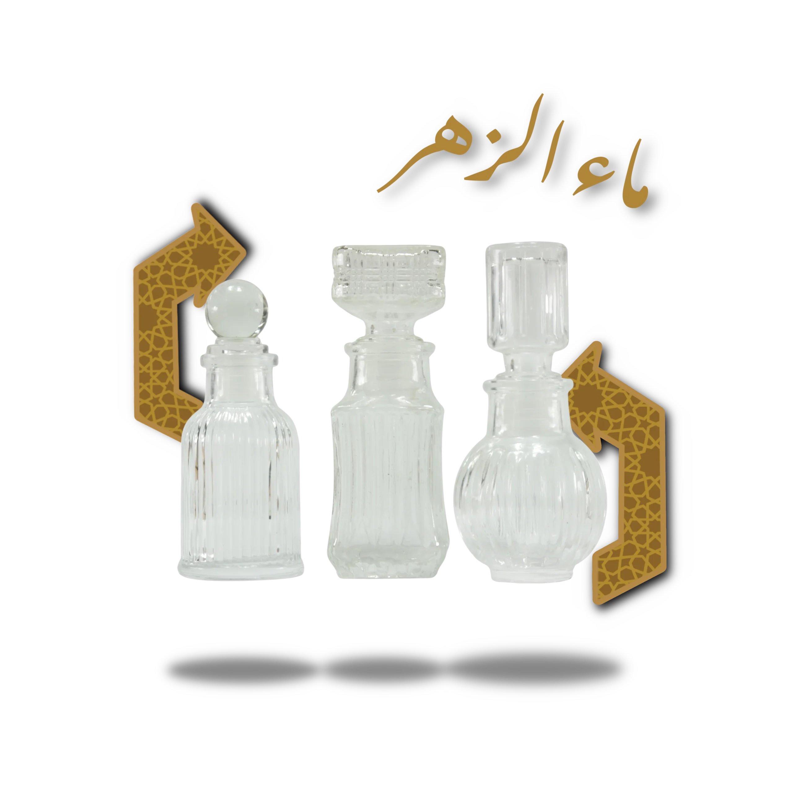 Flacons eau de zher en verre transparent, élégants et solides. Disponibles en plusieurs modèles pour conserver vos préparations parfumées avec authenticité.