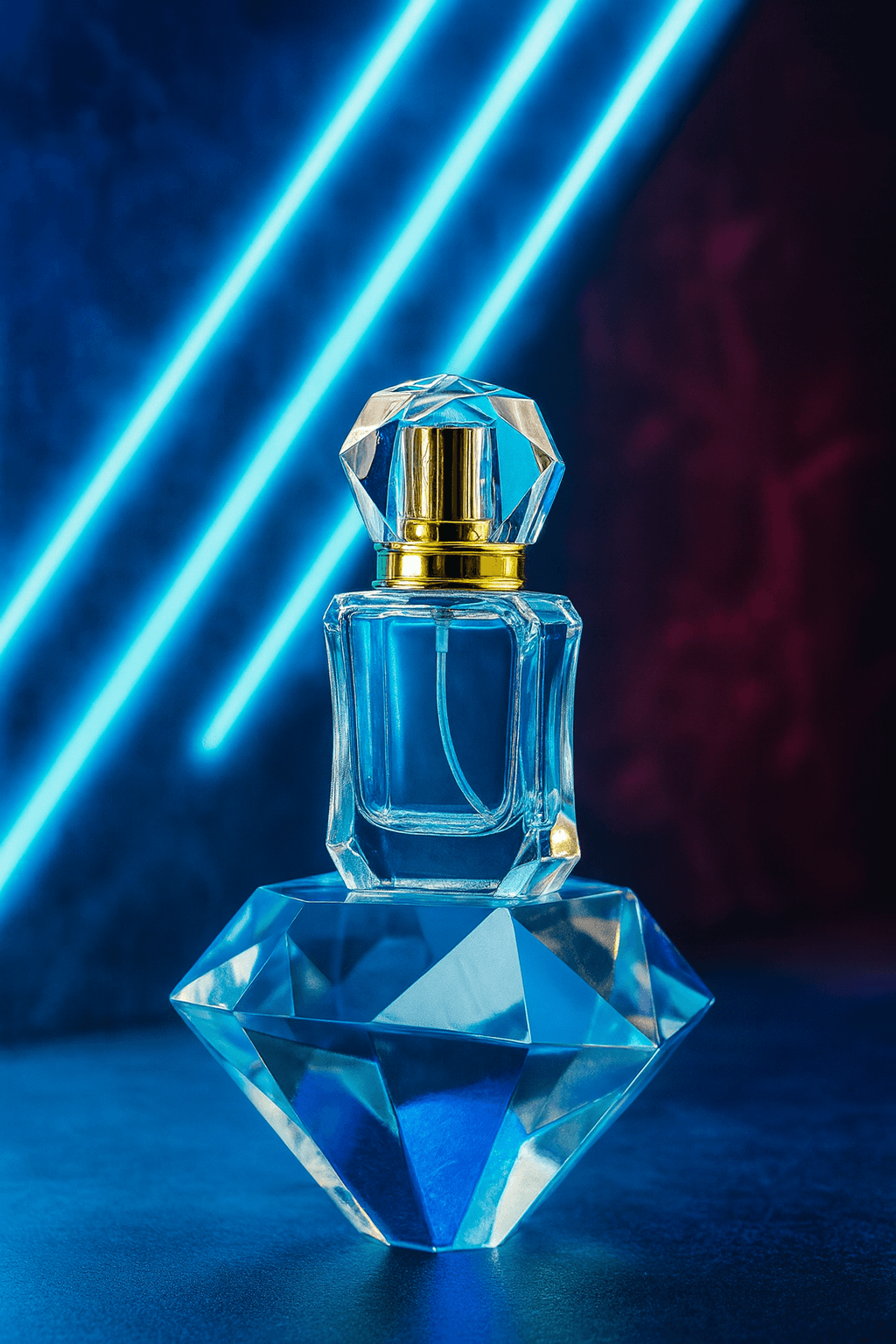 Son design carré, travaillé avec précision, se distingue par des lignes droites et épurées. Le bouchon façon cristal, agrémenté d’une bague dorée, renforce l’aspect luxueux du flacon. Ce mariage entre verre transparent et finitions dorées attire immédiatement l’œil et met en valeur la couleur de vos essences.