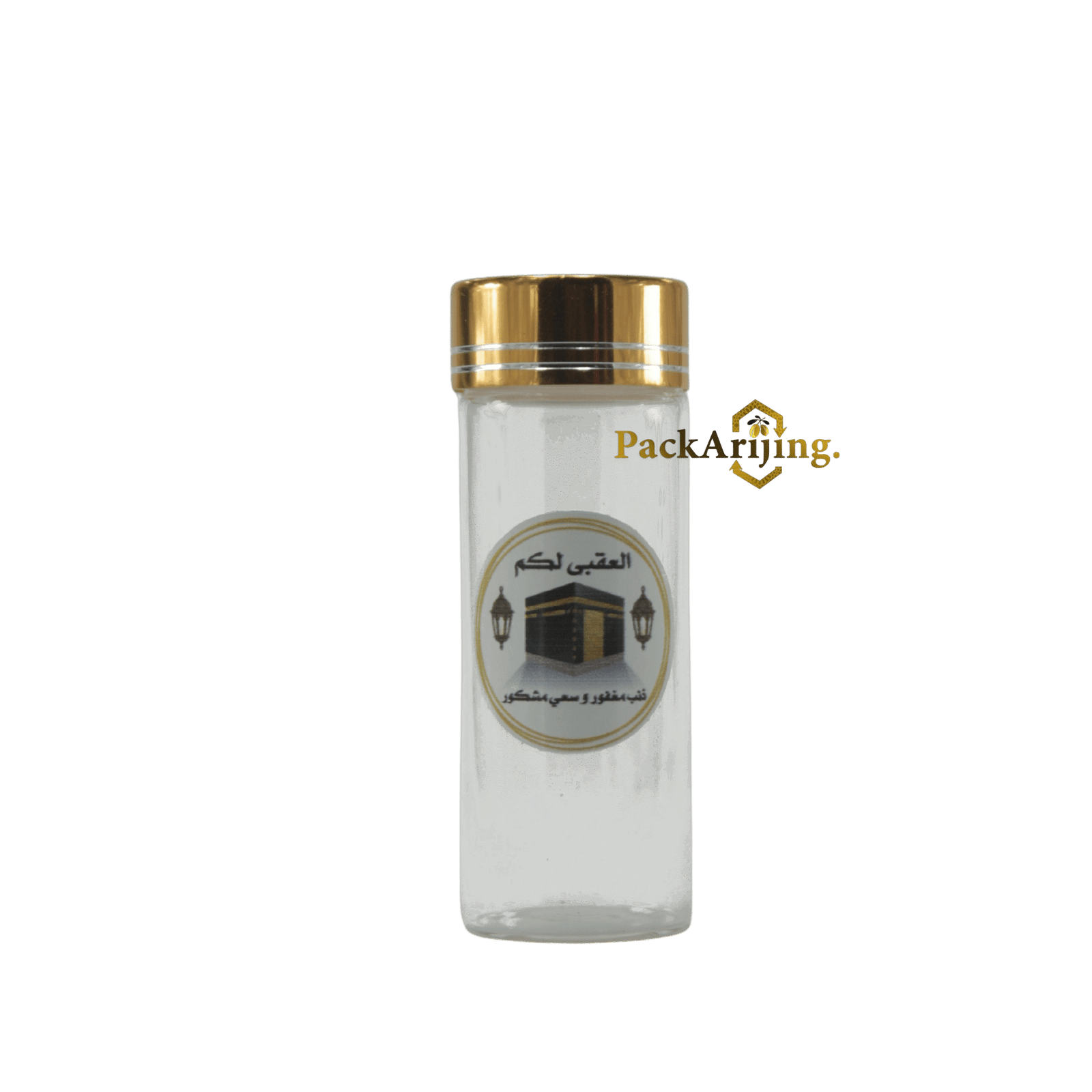 Offrez à vos convives un souvenir raffiné avec ces flacons en verre blanc au bouchon doré, idéals pour présenter des dragées ou de la serghina lors de mariages, henné, Hajj ou Omra.